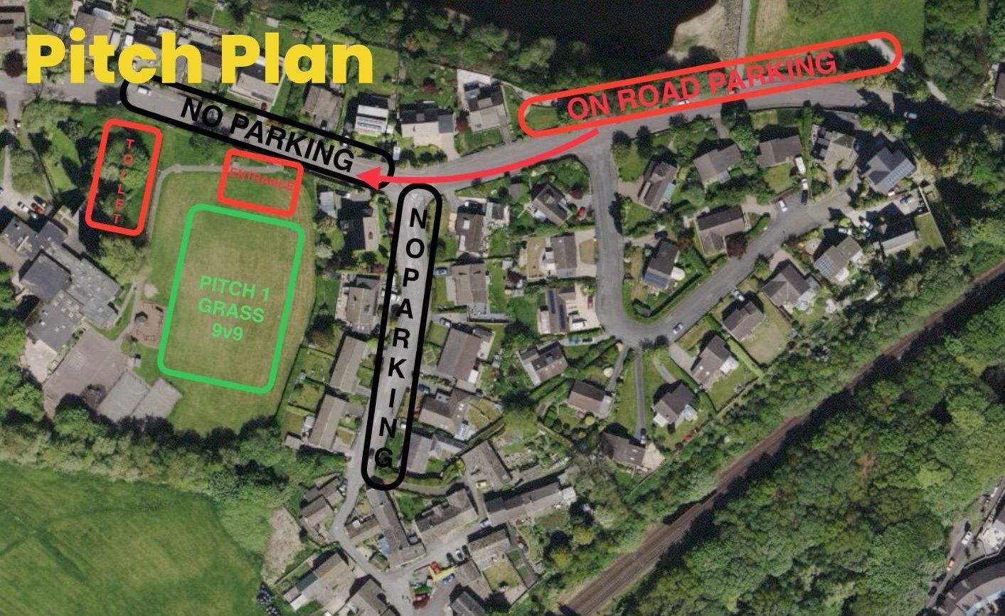 We request that attendees park within the area highlighted in Red. This is a 2 minute walk to the fields & won't disturb the local residents. Please don’t park within the school grounds, across residents drives or within areas marked to keep clear. This is a narrow road so please don’t double park. It is a quiet residential area so please ensure to respect the local residents & work with them if they ask you to move.